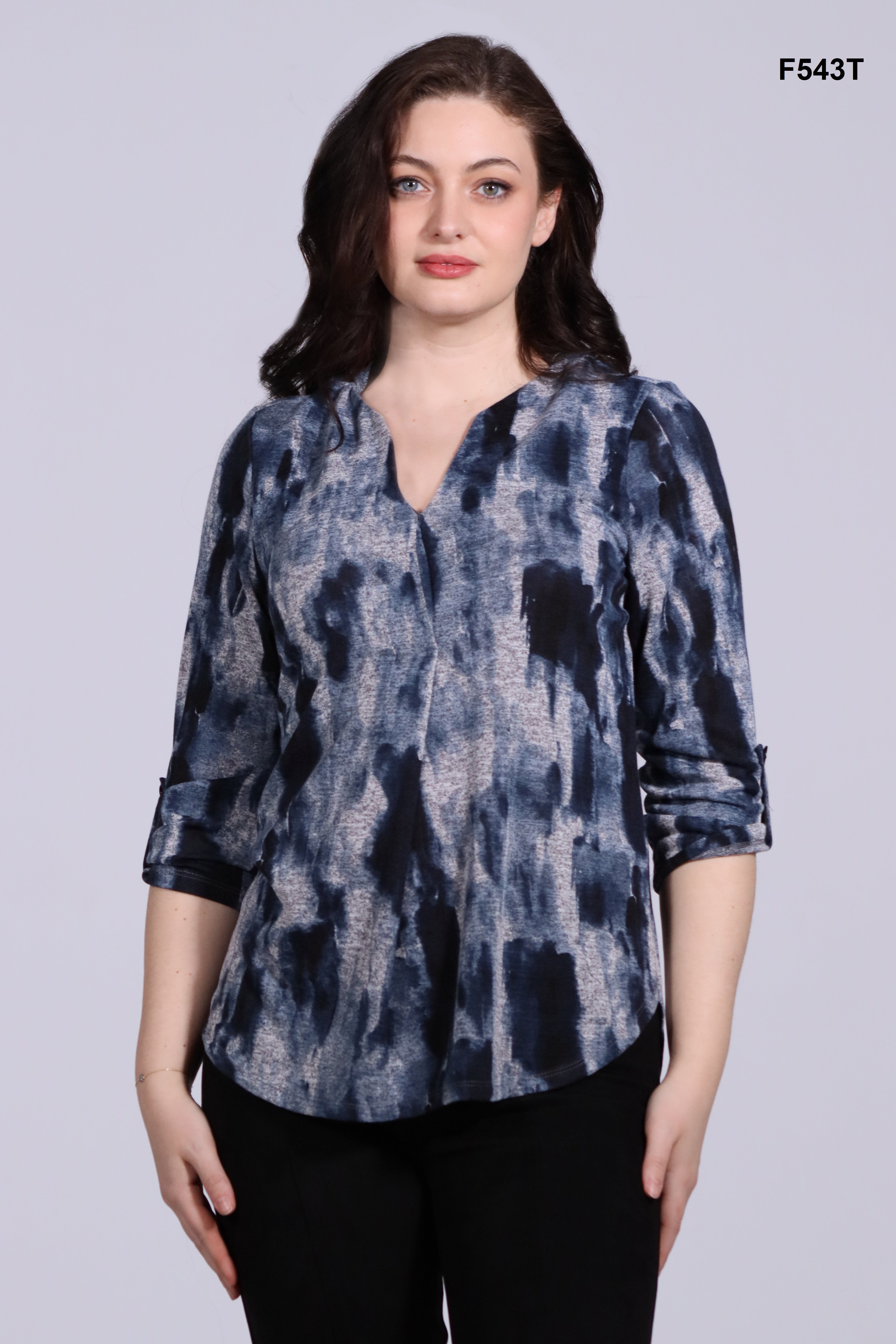 Elevate your style with this beautiful sweater by Dévia , designed for the modern woman looking for elegance and comfort. Its unique design, embellished with artistic patterns evoking paint stains in navy shades, makes it a distinctive piece that will attract all eyes. Ideal for your days at the office as well as for your sophisticated outings, this sweater perfectly combines refinement and originality.