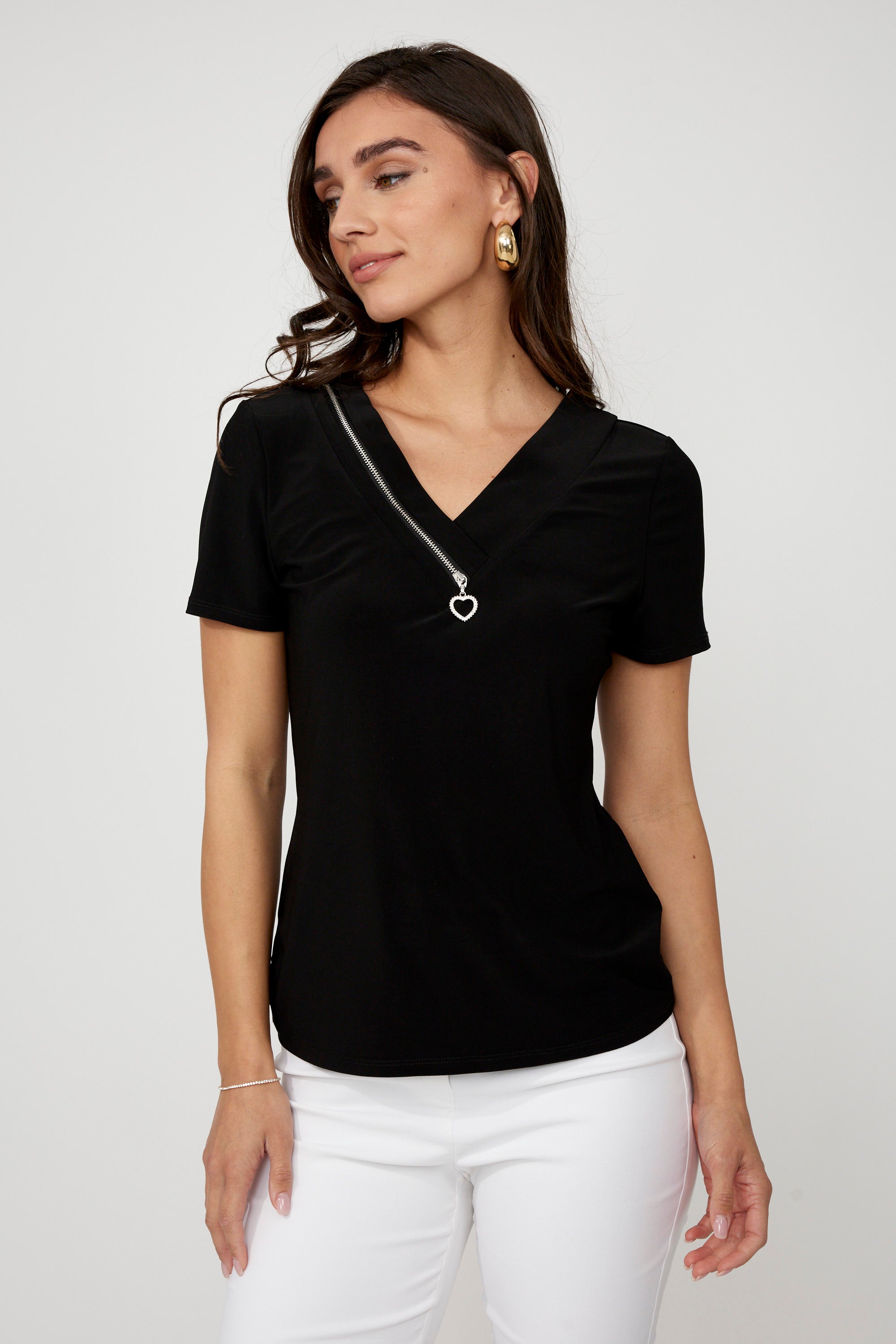 - V-Neck with Chic Detail : A decorative zipper runs along the right side collar and ends with a charming heart-shaped carriage, adding a unique feminine touch.