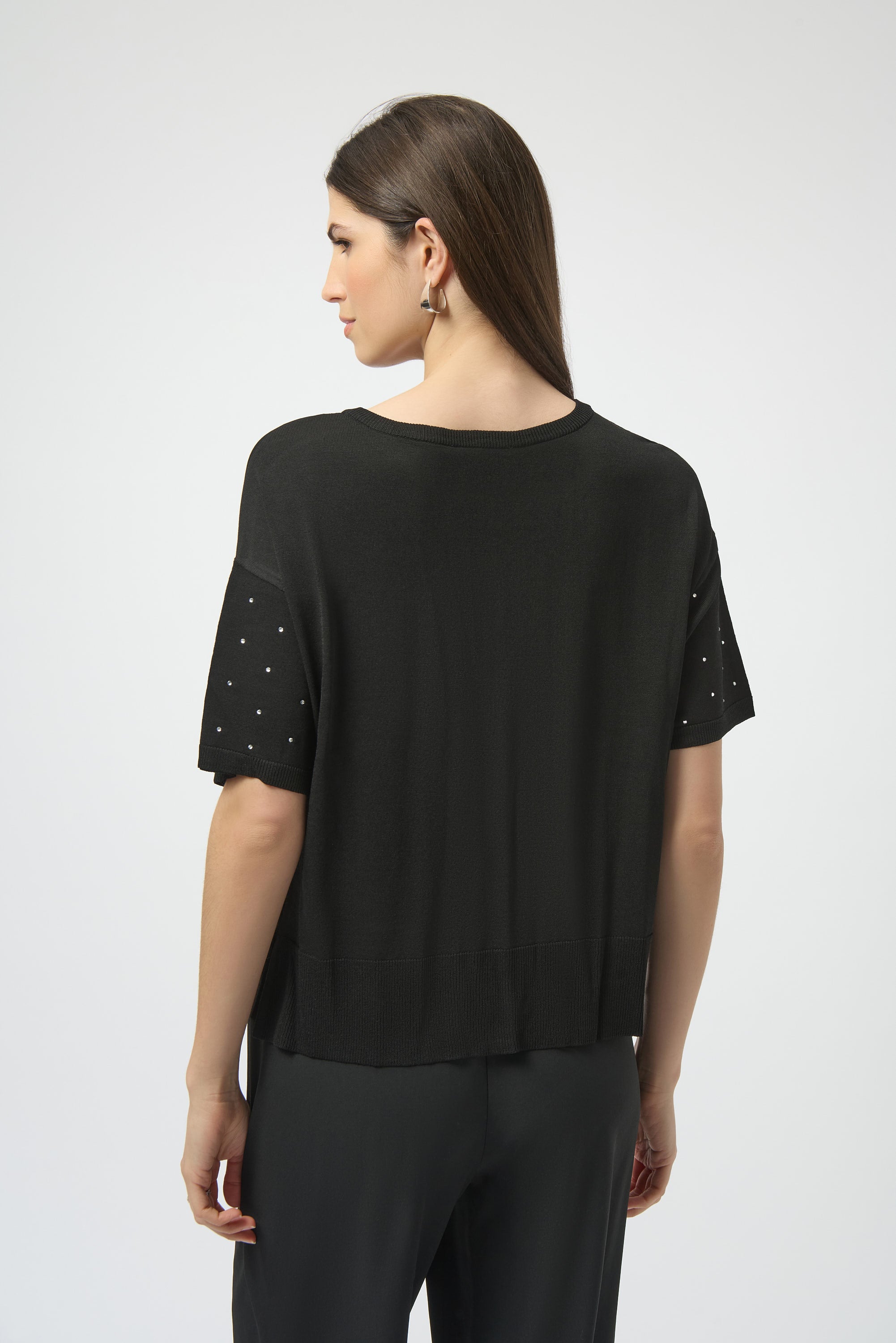 Bring a touch of sophistication to your wardrobe with this Joseph Ribkoff knit sweater, a true symbol of understated refinement. Crafted from a blend of 35% nylon and 65% viscose rayon, this style seduces with its sumptuous softness and exceptional comfort . Its boxy cut and perfect length (58.42 cm) subtly highlight the silhouette , while the boat neckline adds a touch of relaxed elegance .