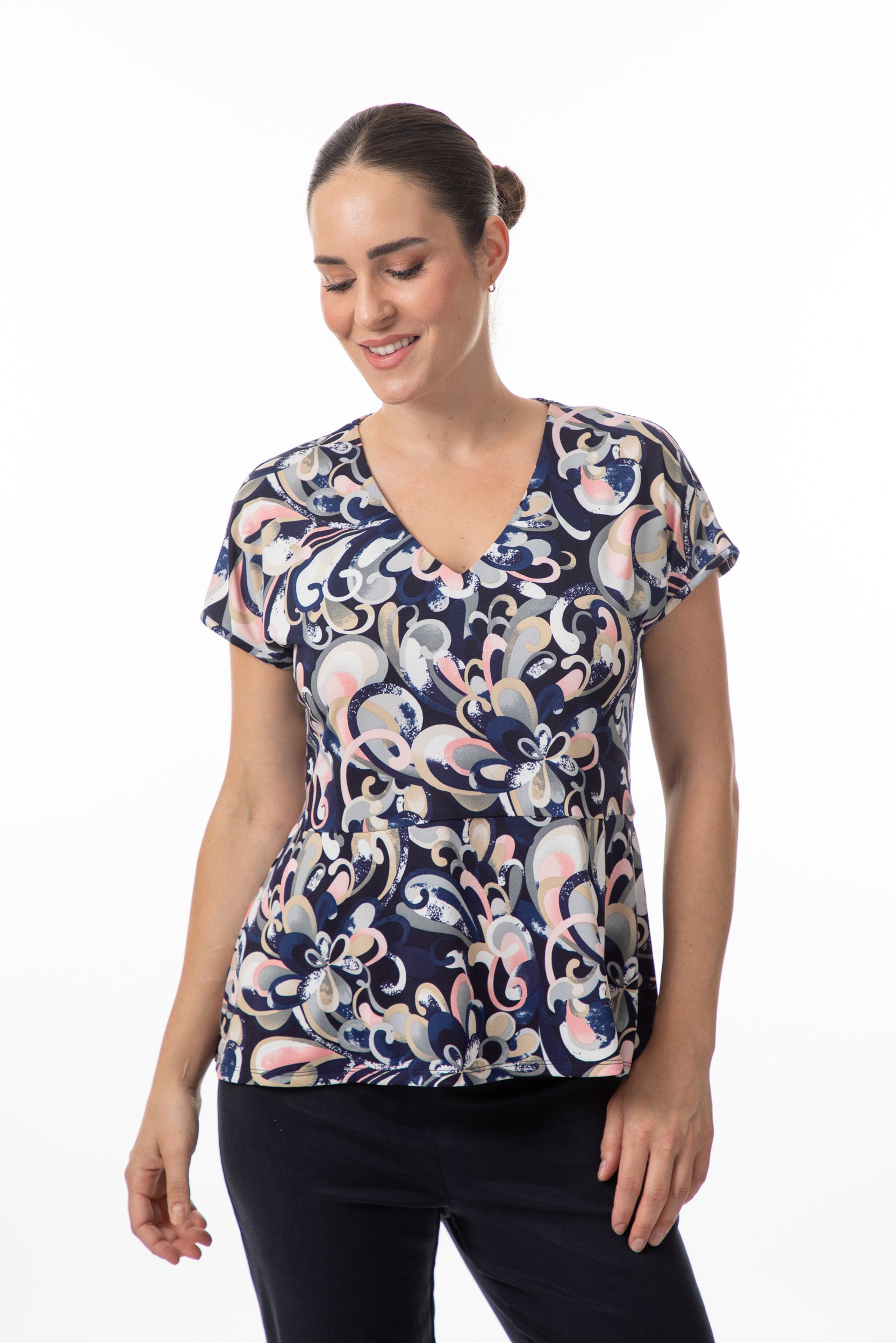 Printed V-neck empire waist sweater: flowing and feminine elegance