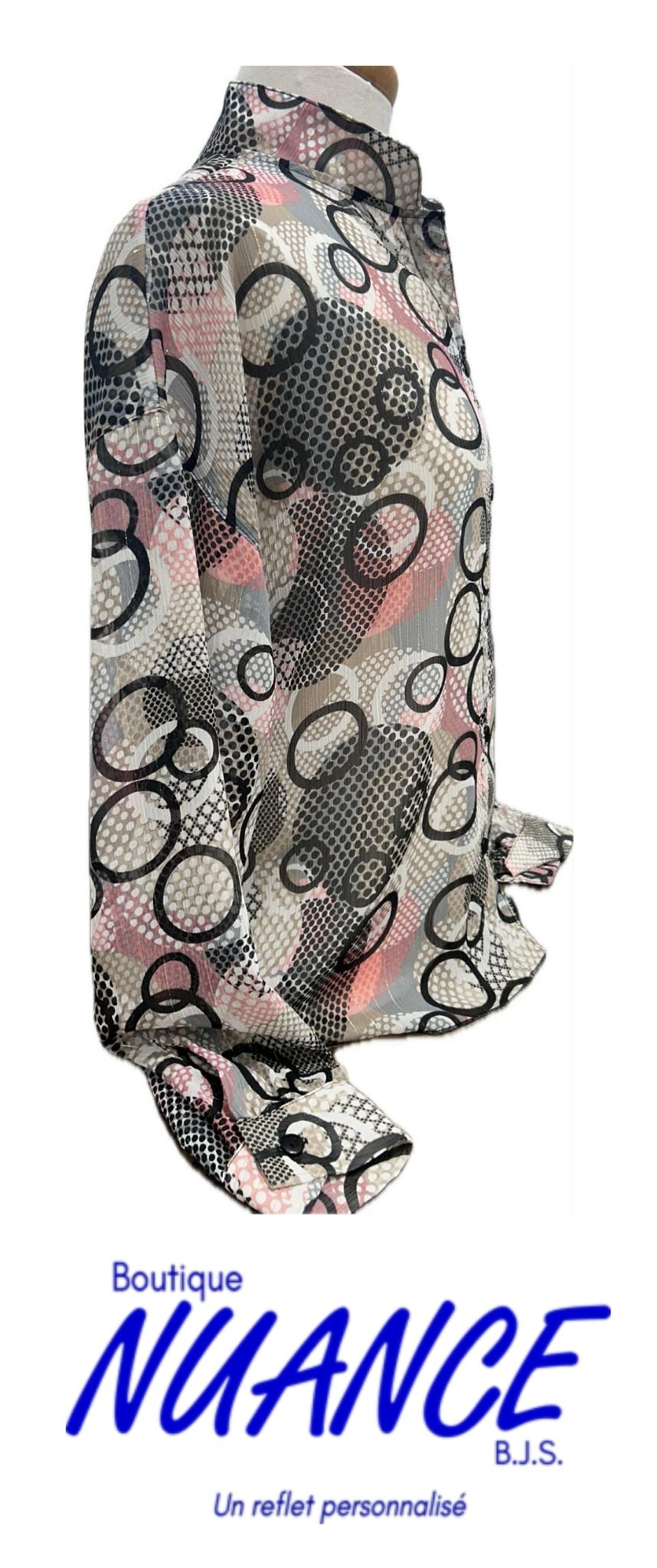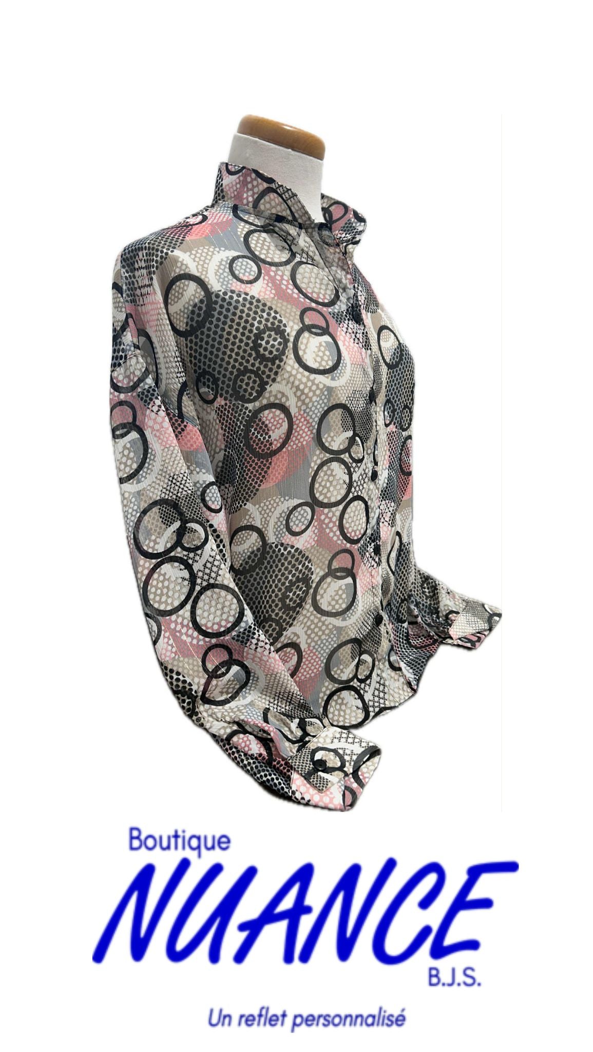 Dive into ethereal elegance with Danse Élégante des Cercles en Couleurs , a captivating creation by Bali, the Canadian brand celebrated for its expertise in sophisticated and comfortable fashion. Hailing from the creative heart of Canada, this blouse combines lightness, bold style and versatility to enhance every outfit with a contemporary touch.