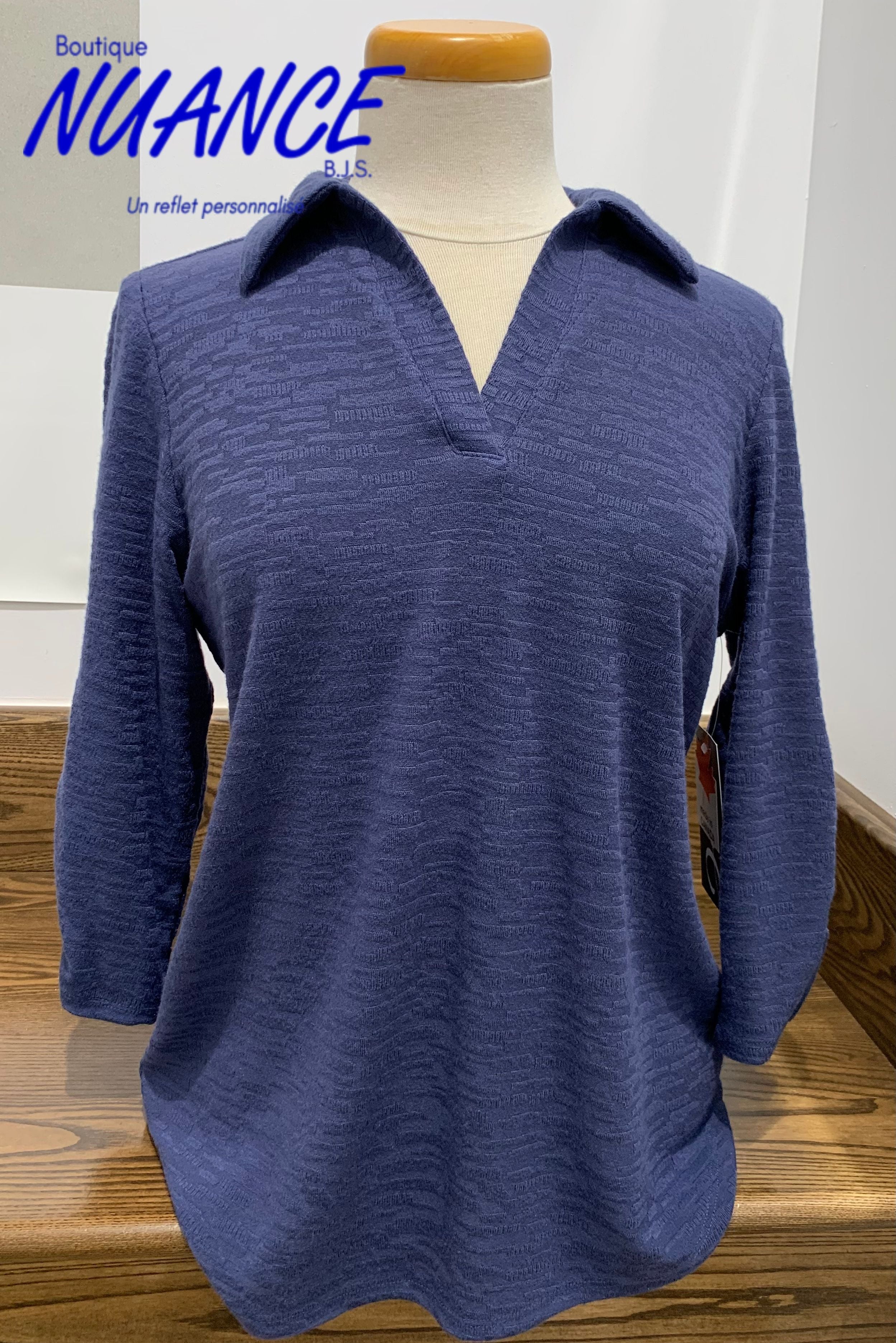 A distinguished top with three-quarter sleeves for a feminine and graceful silhouette.