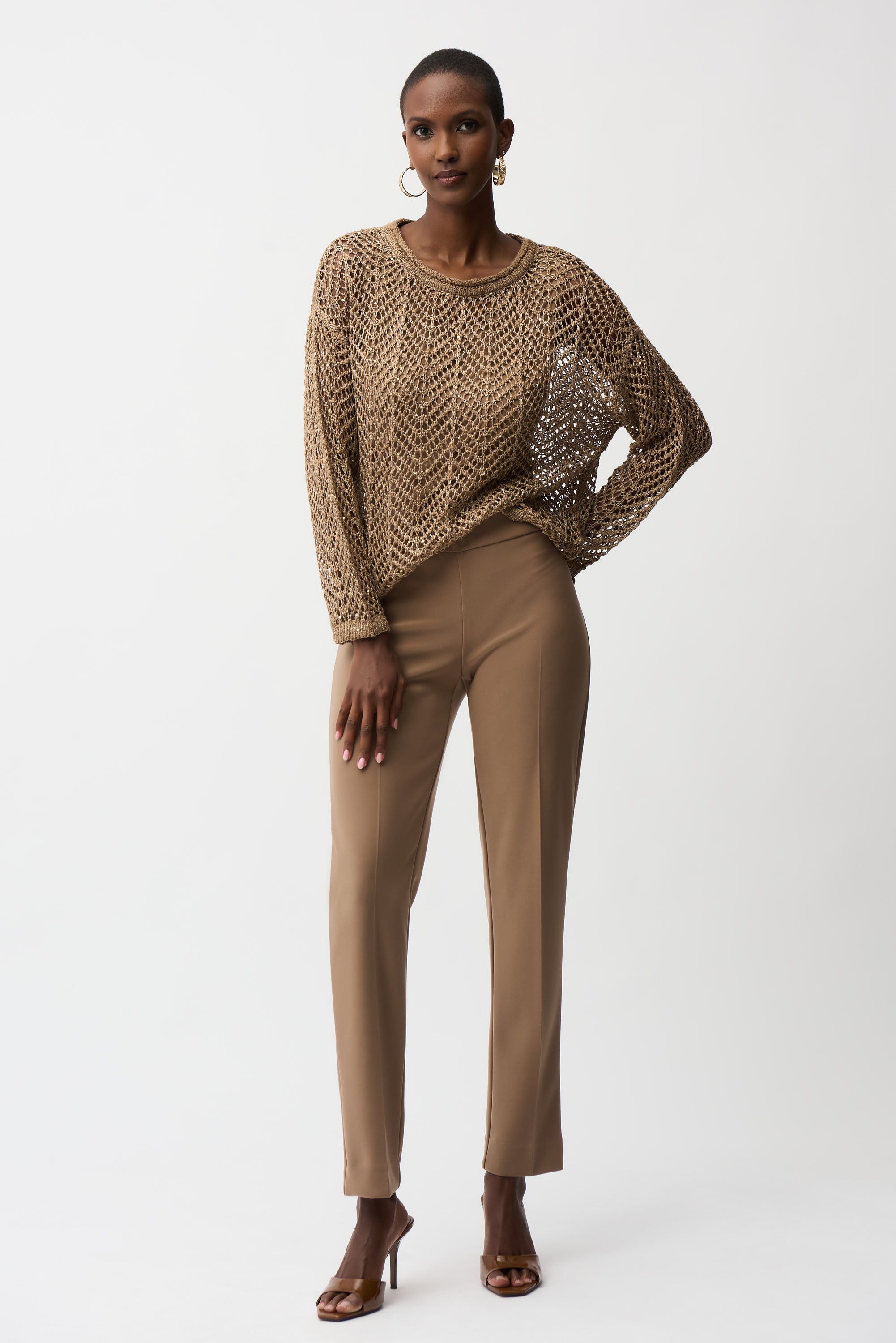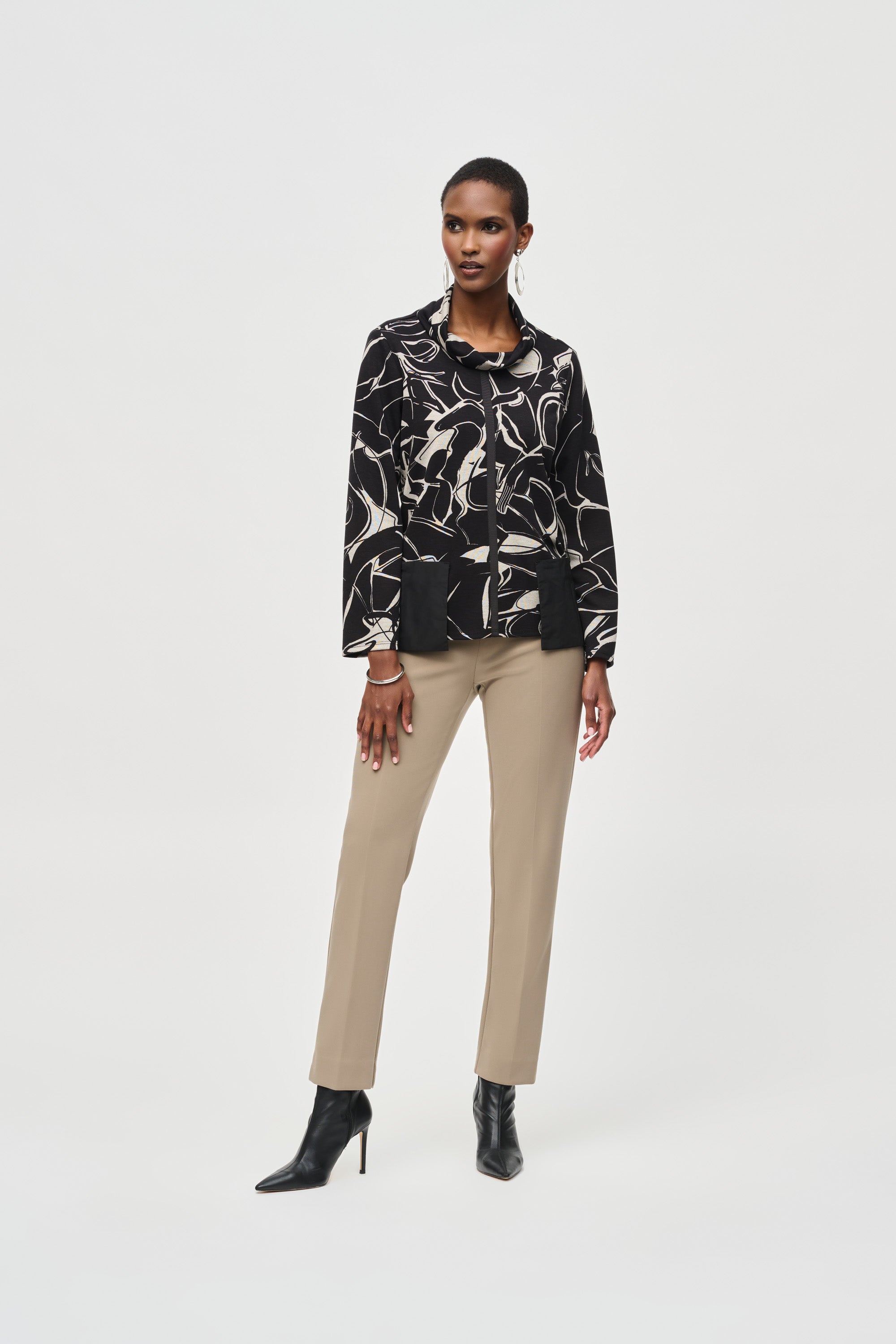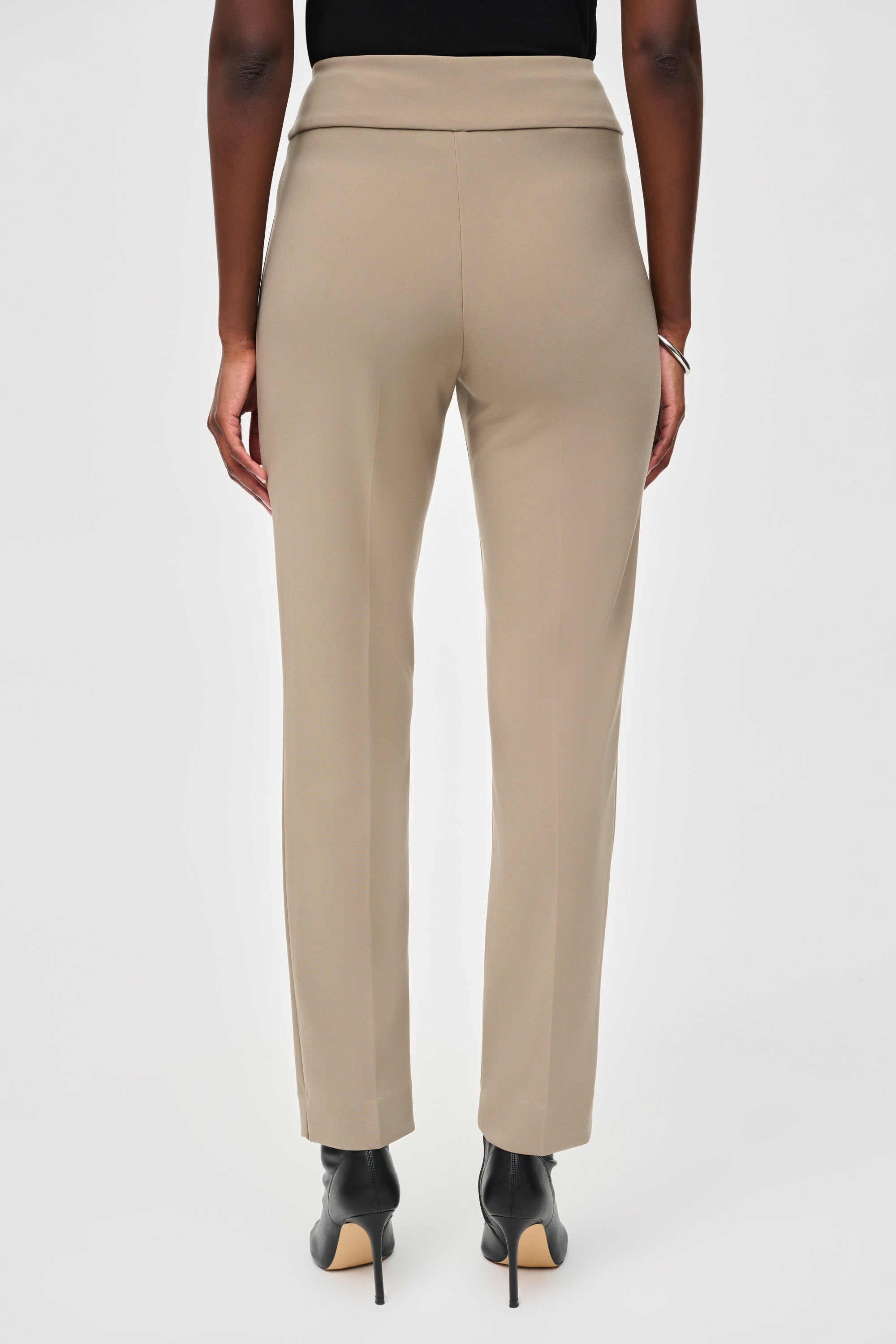 Discover Joseph Ribkoff's slim-fit tailored pants , featuring a subtle JR embellishment , designed for the sophisticated woman who wants to combine comfort and elegance. These pull-on pants, crafted from a flattering silky knit, showcase a classic silhouette while ensuring comfortable wear all day long.
