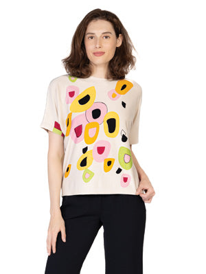 ● Short sleeves and round neckline , for a flattering cut that suits all figures
