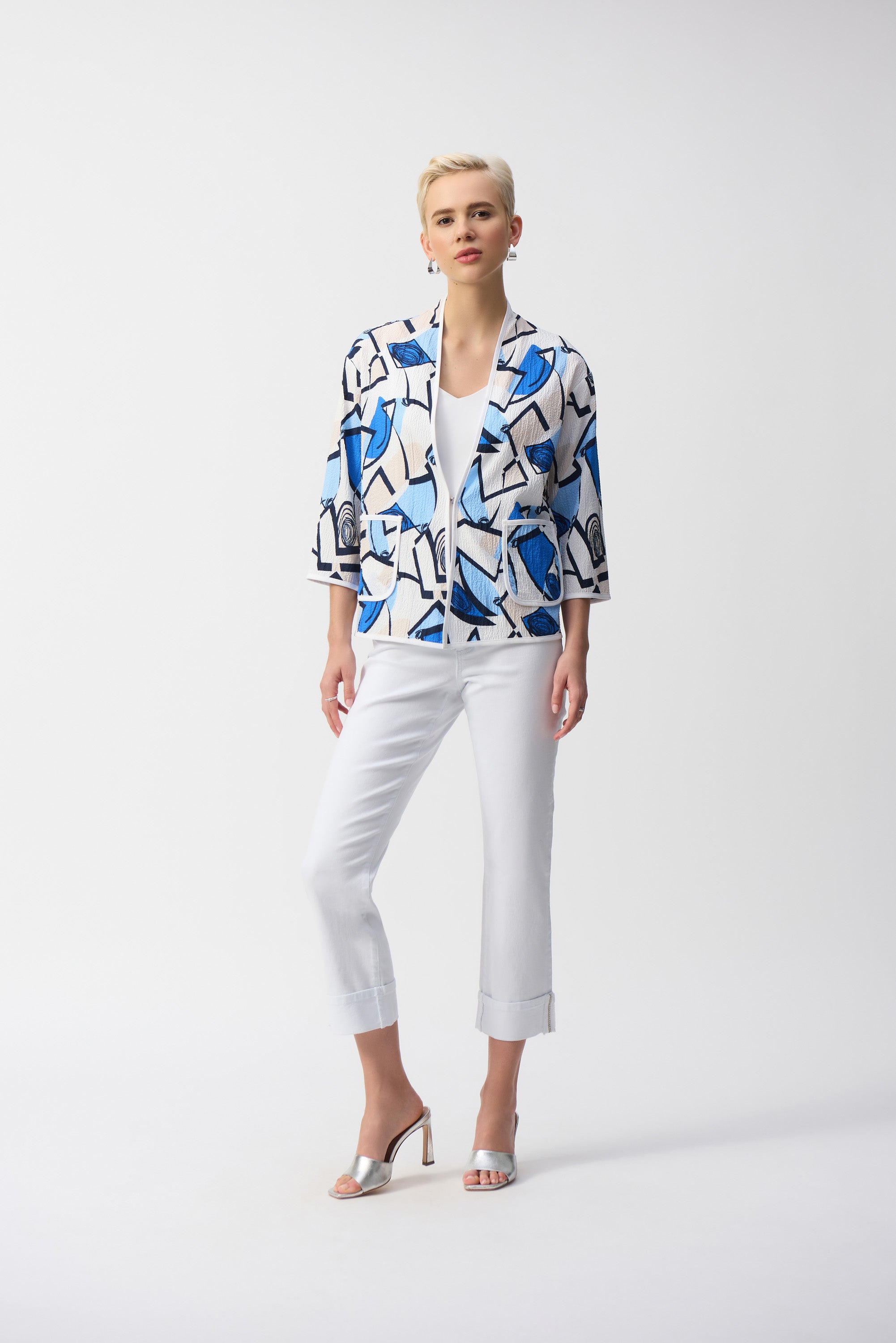 With this geometric print Joseph Ribkoff jacket, assert your style with confidence and elegance, while enjoying incomparable comfort.
