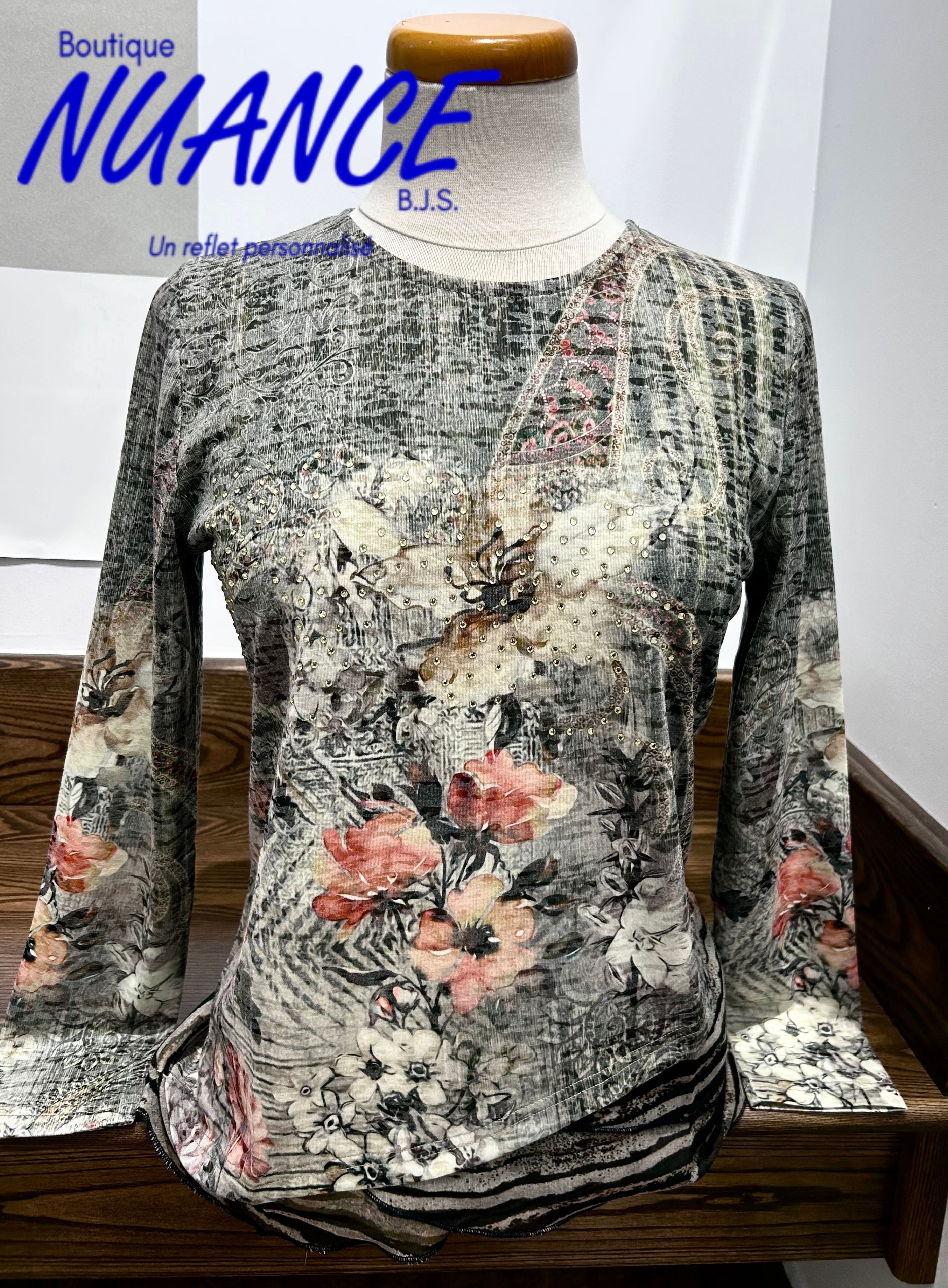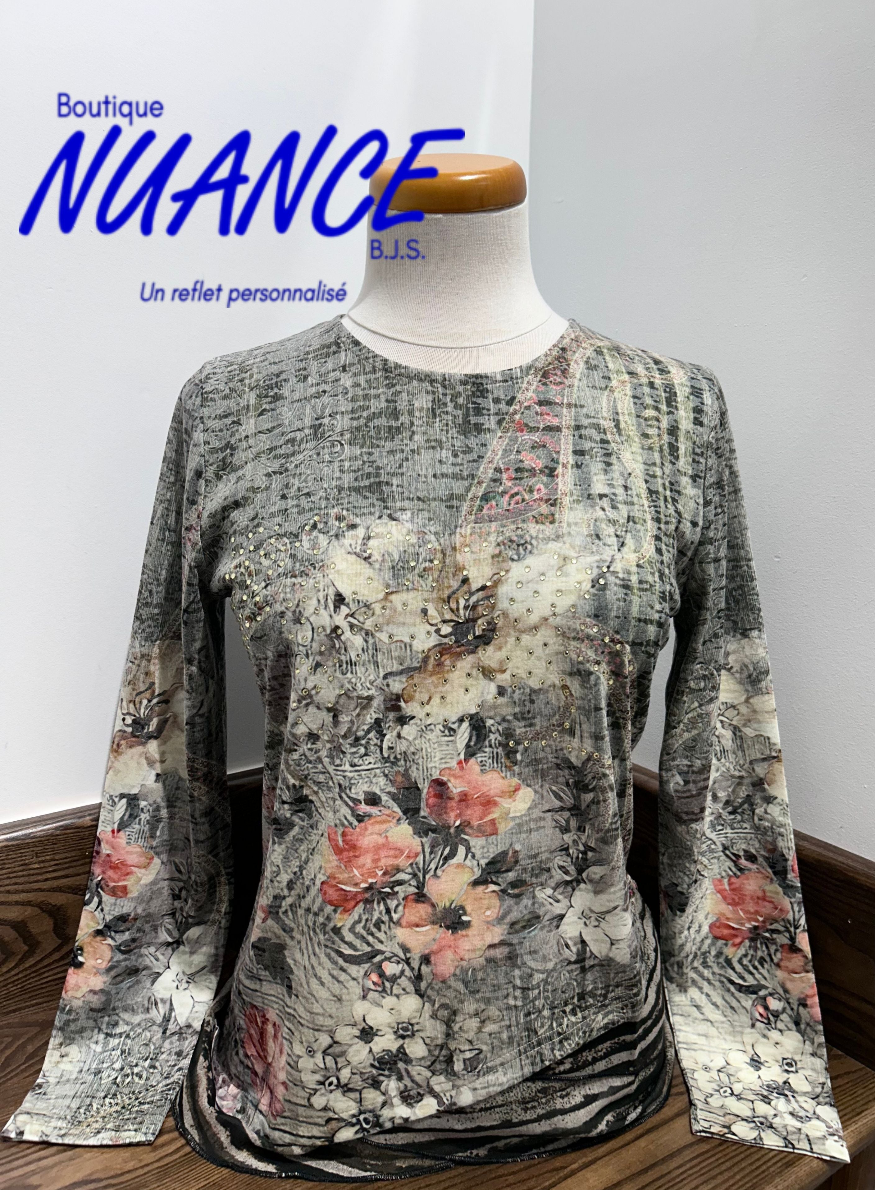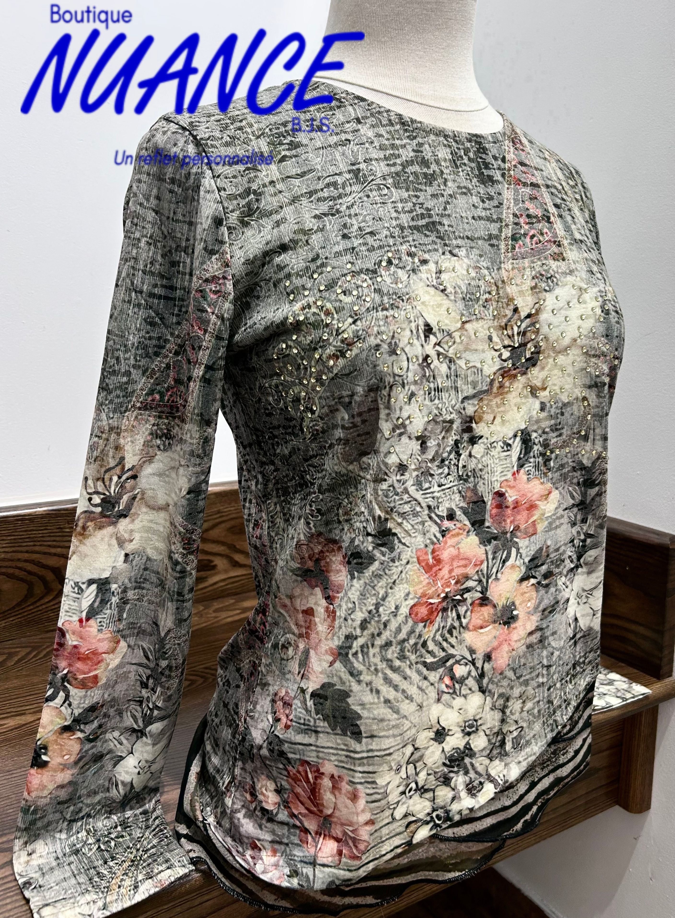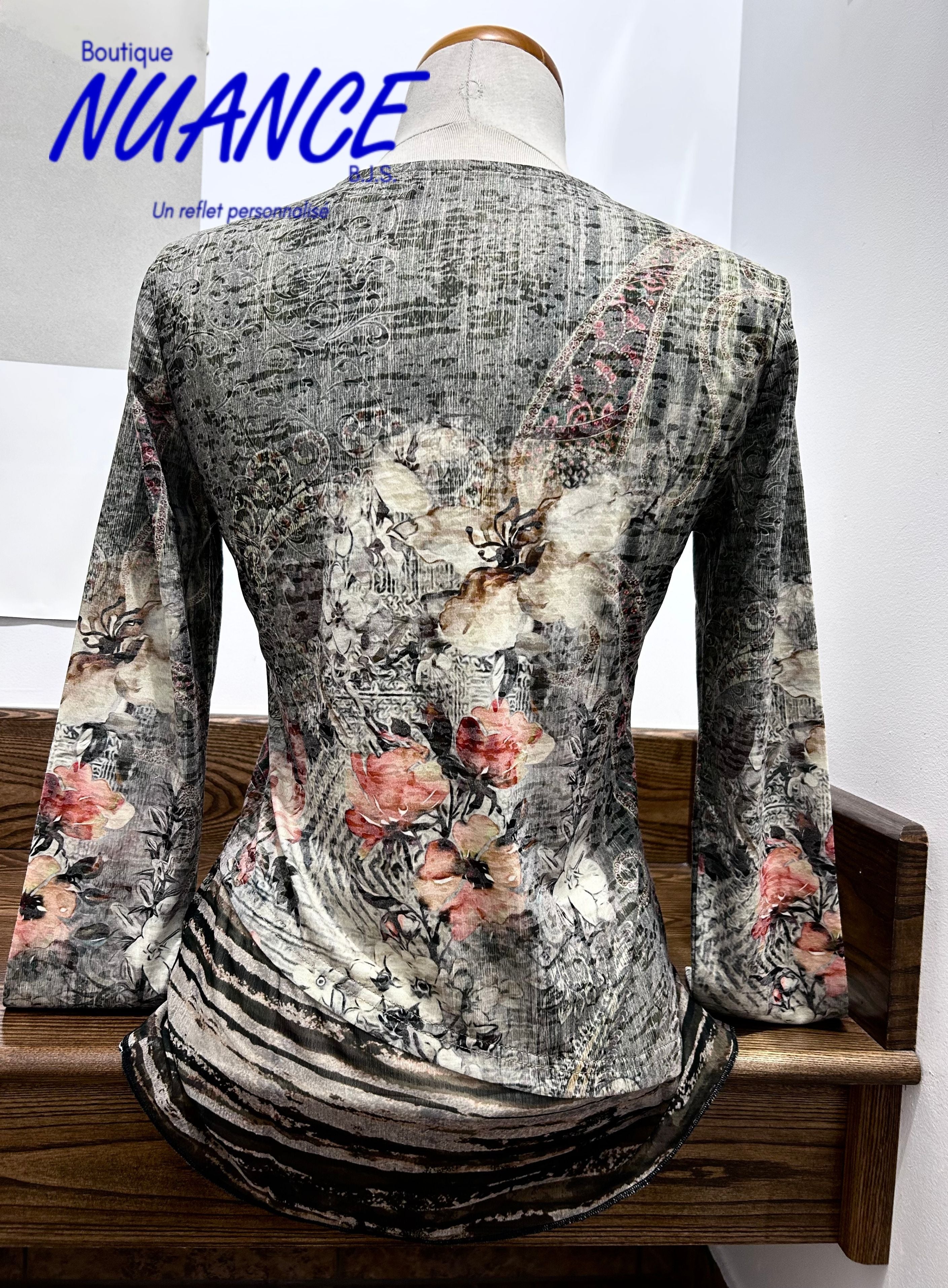 Plongez dans l’élégance avec le chandail "Éclat Floral Kaki", une pièce d’exception de la collection Beta's Choice qui marie romantisme vintage et sophistication contemporaine. Ce haut à manches longues est conçu pour sublimer votre style avec une touche florale raffinée et polyvalente.