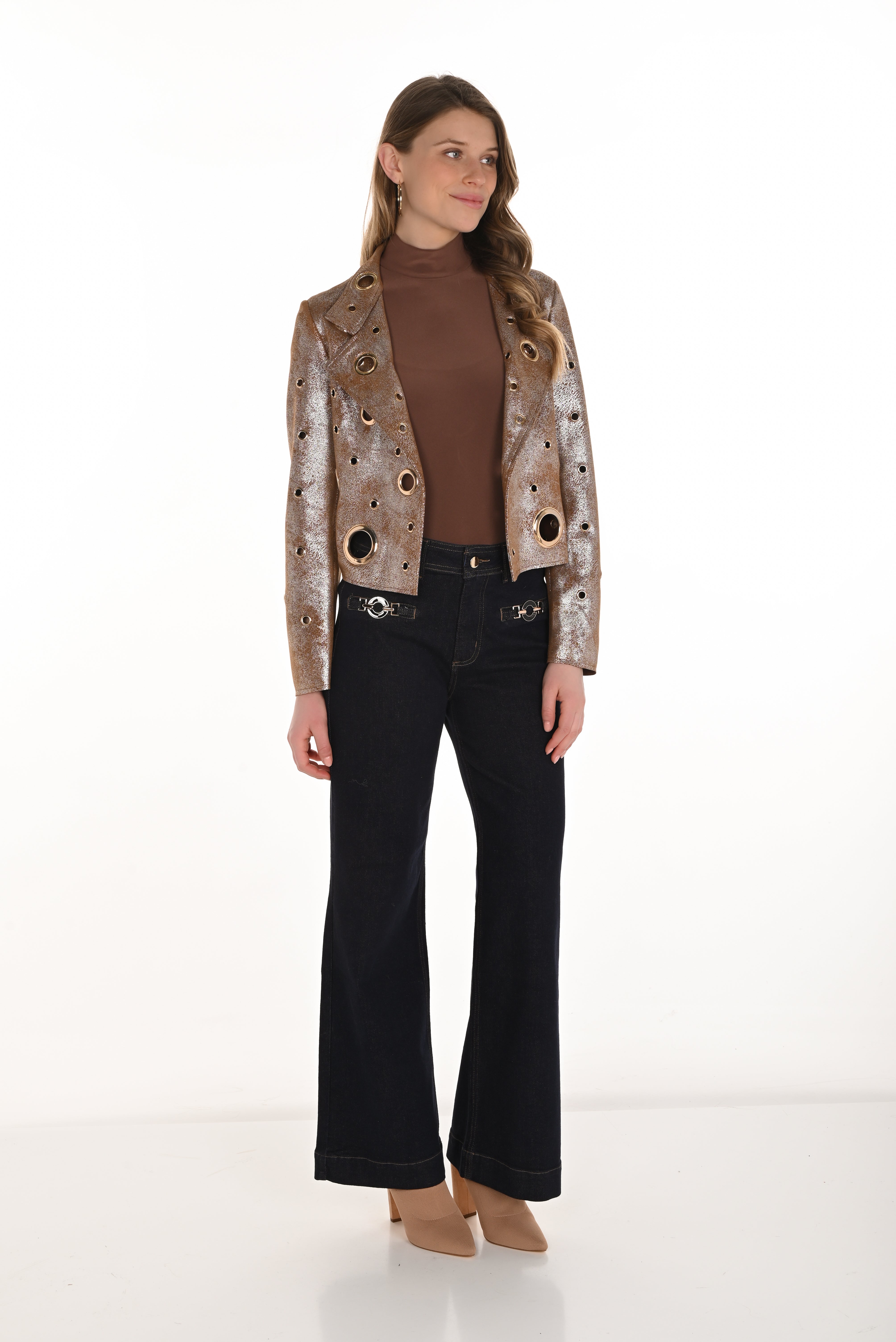 Coupe : Jambe droite évasée subtilement, offrant une allure allongée et équilibrée.