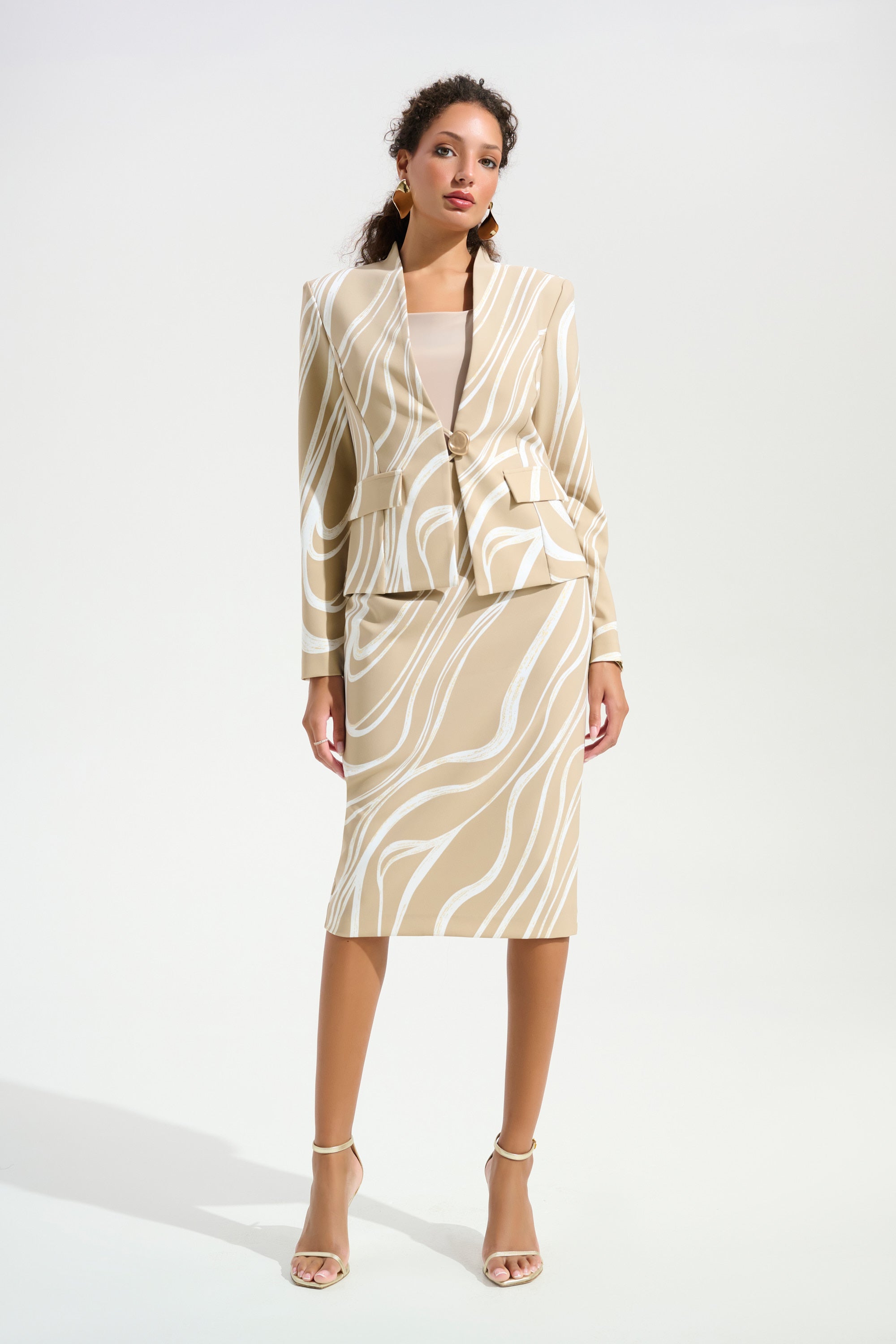 ✨ Une pièce phare signée Joseph Ribkoff — entre fluidité artistique et sophistication dorée, la jupe qui illumine vos plus belles occasions. ✨