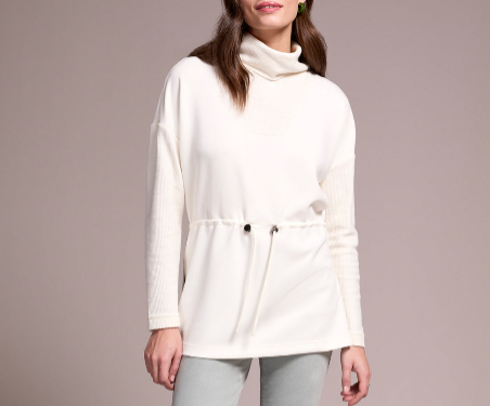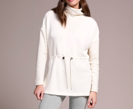 - Tissu Ultra-Doux : Le corps de la tunique, façon chandail, est conçu dans un tissu d’une douceur exquise, caressant la peau à chaque mouvement.