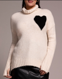 Détail avant : grand cœur noir contrastant, placé côté gauche, qui attire l’œil et ajoute une touche audacieuse et moderne.