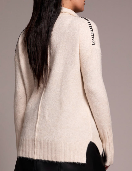 Col : col roulé souple et légèrement ample, assurant chaleur et élégance.