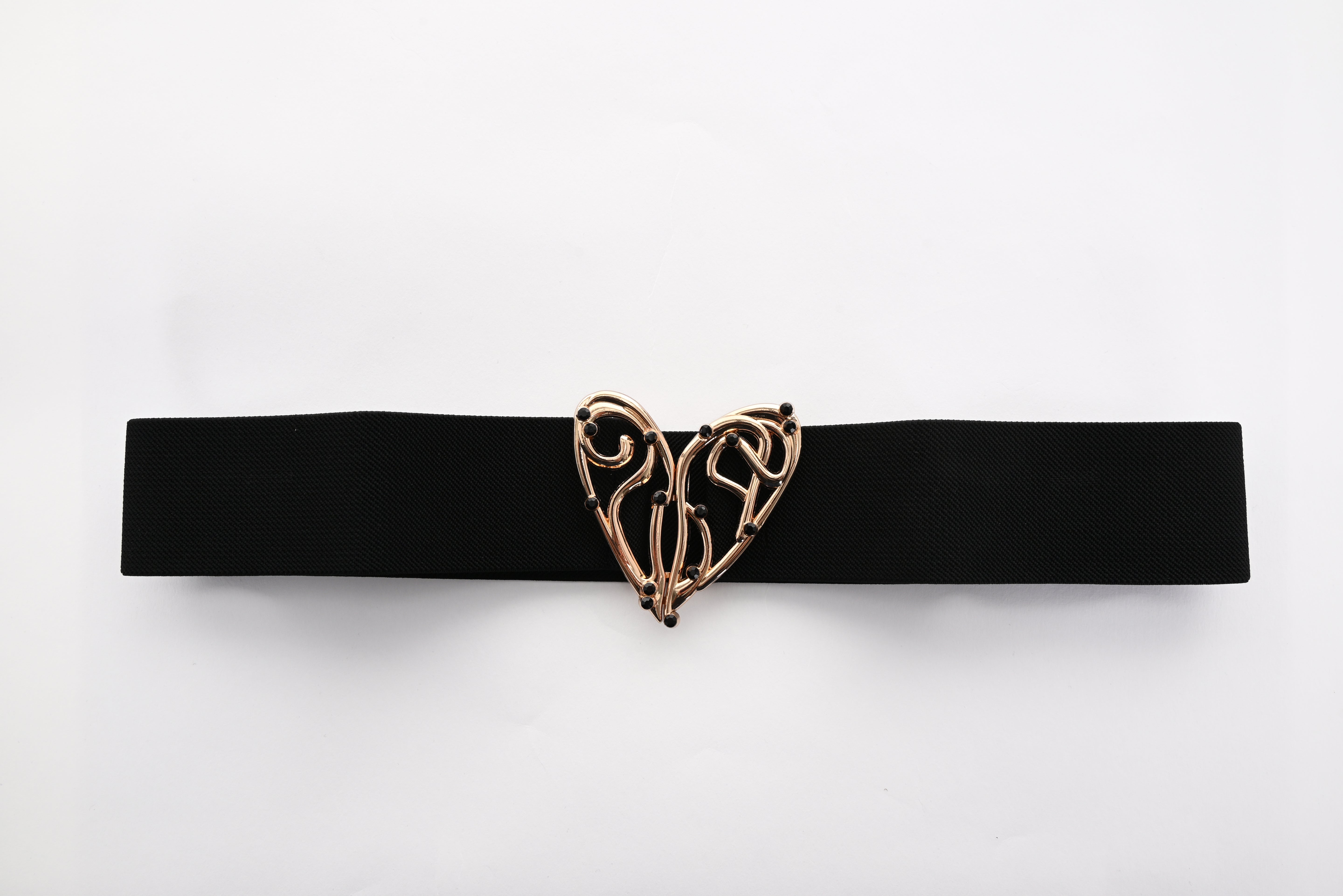 Marque et design général : Une ceinture envoûtante de Frank Lyman, en noir profond et or métallique scintillant, conçue pour les âmes romantiques éprises de raffinement.