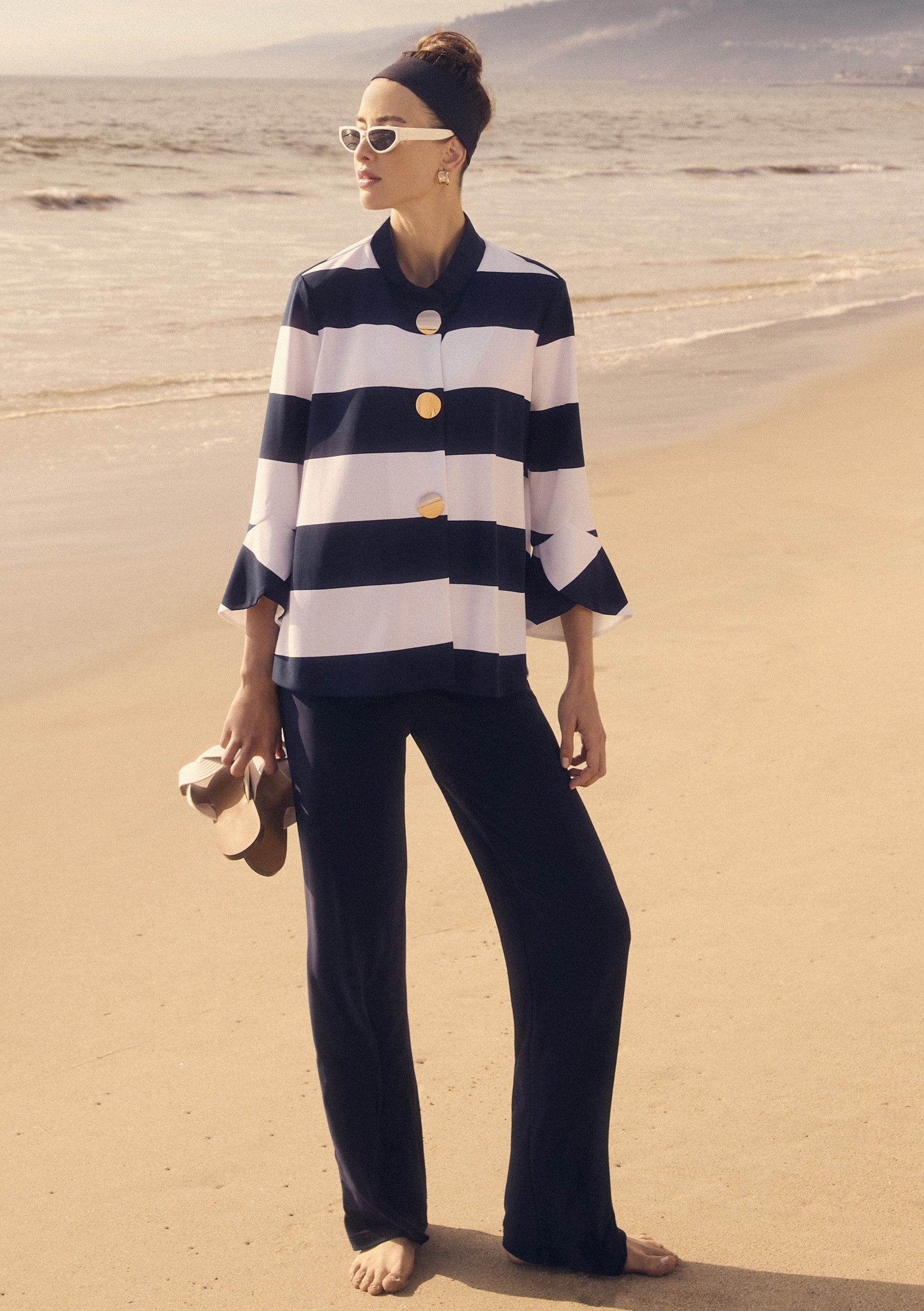 Coupe droite fluide, assurant une silhouette allongée et équilibrée.