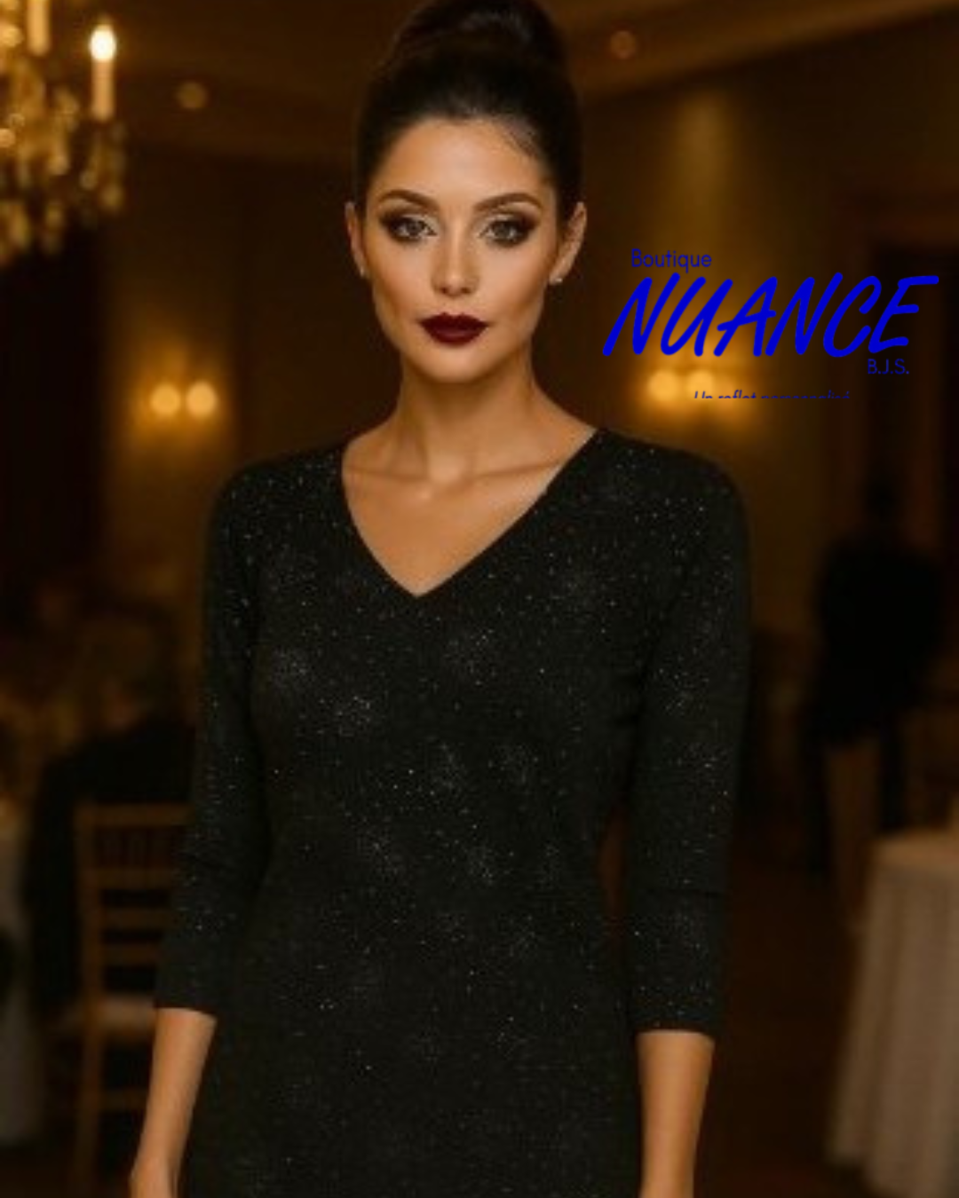 Couleur : Noir intemporel, sublimé par l’éclat délicat des paillettes.