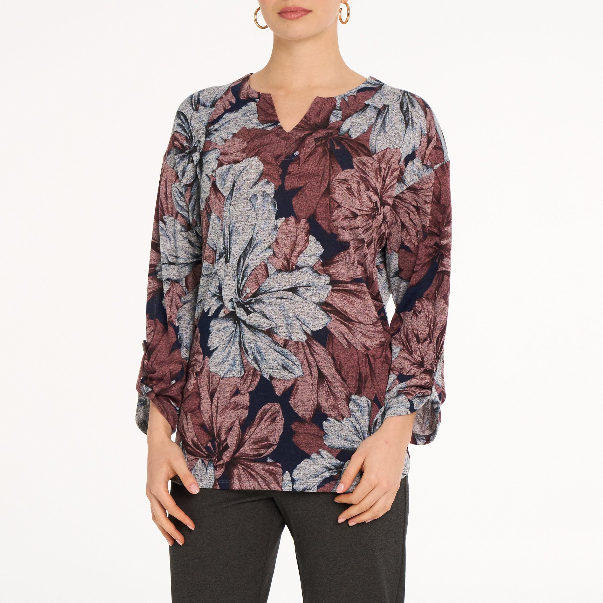 Dévia, marque canadienne, crée des collections modernes célébrant les femmes avec un engagement envers l’économie locale. Ce haut à manches longues, conçu au Canada, dans un gris sophistiqué orné de motifs floraux dynamiques, allie confort soyeux et style artistique pour un look qui captive.