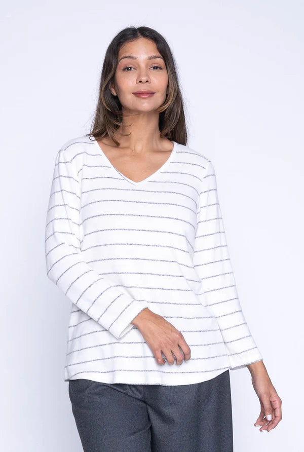 Plongez dans un confort luxueux avec Fluidité Douceur Élégante, un haut signé ISCA, une compagnie canadienne, qui allie douceur exquise et style raffiné. Ce haut blanc à manches longues, orné d’un effet linéaire gris captivant, est conçu pour sublimer votre silhouette avec une touche moderne et versatile. Idéal pour toutes les occasions, ce bijou de la mode deviendra votre essentiel quotidien.