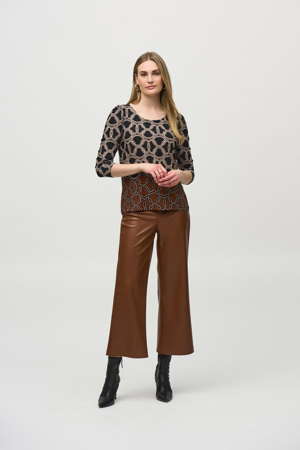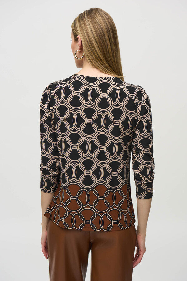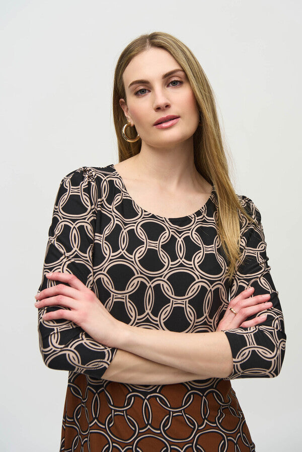 Ce haut pour femme, proposé par Joseph Ribkoff, est un mélange parfait de sophistication et de simplicité. Le motif de chaîne apporte une modernité subtile tandis que la coupe régulière et les manches 3/4 assurent un confort optimal. Portez-le avec un pantalon tailleur pour un look professionnel impeccable ou avec une jupe crayon pour une tenue de soirée chic. Ce haut polyvalent est un ajout essentiel à la garde-robe de toute femme active et élégante, alliant luxe et style sans effort.