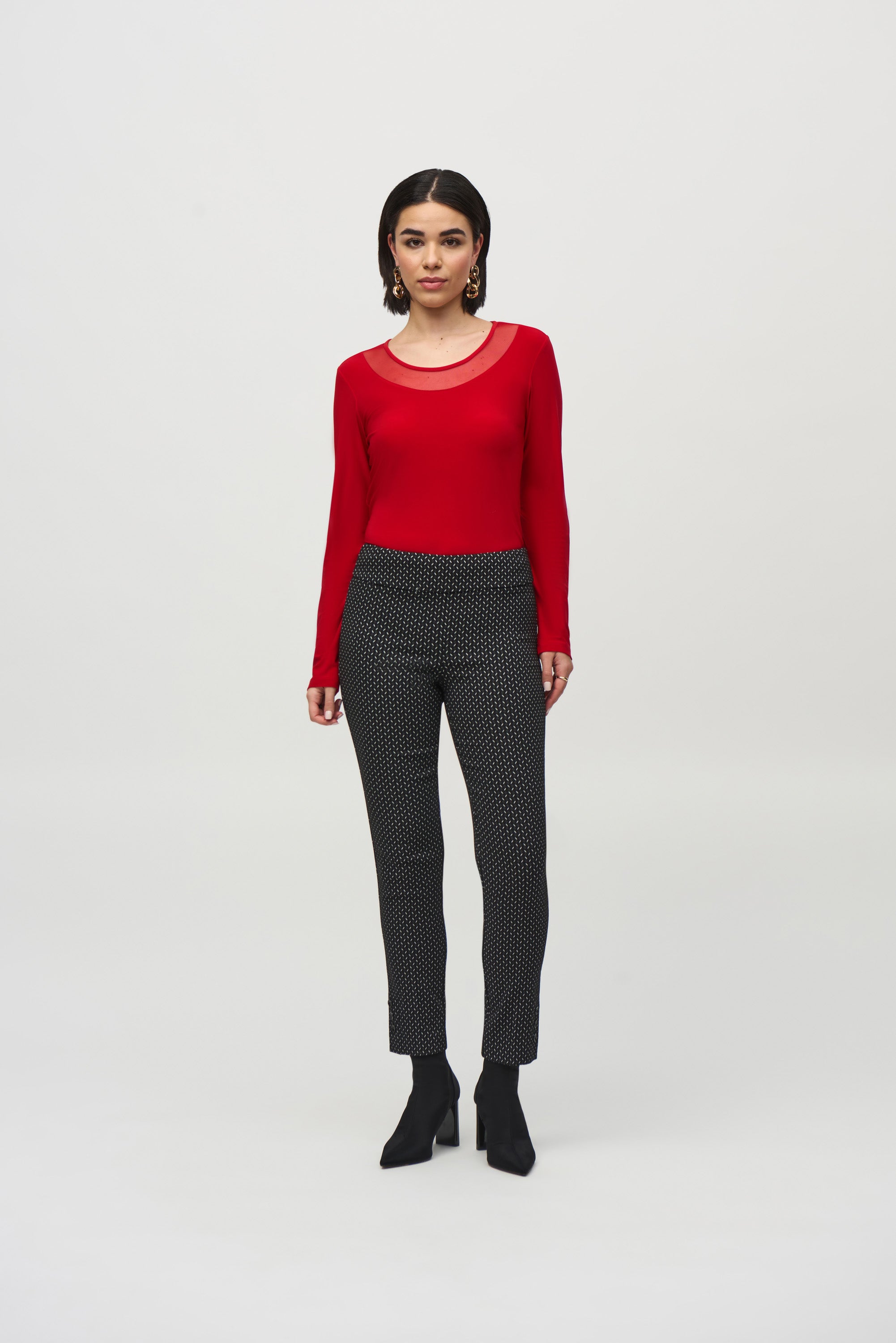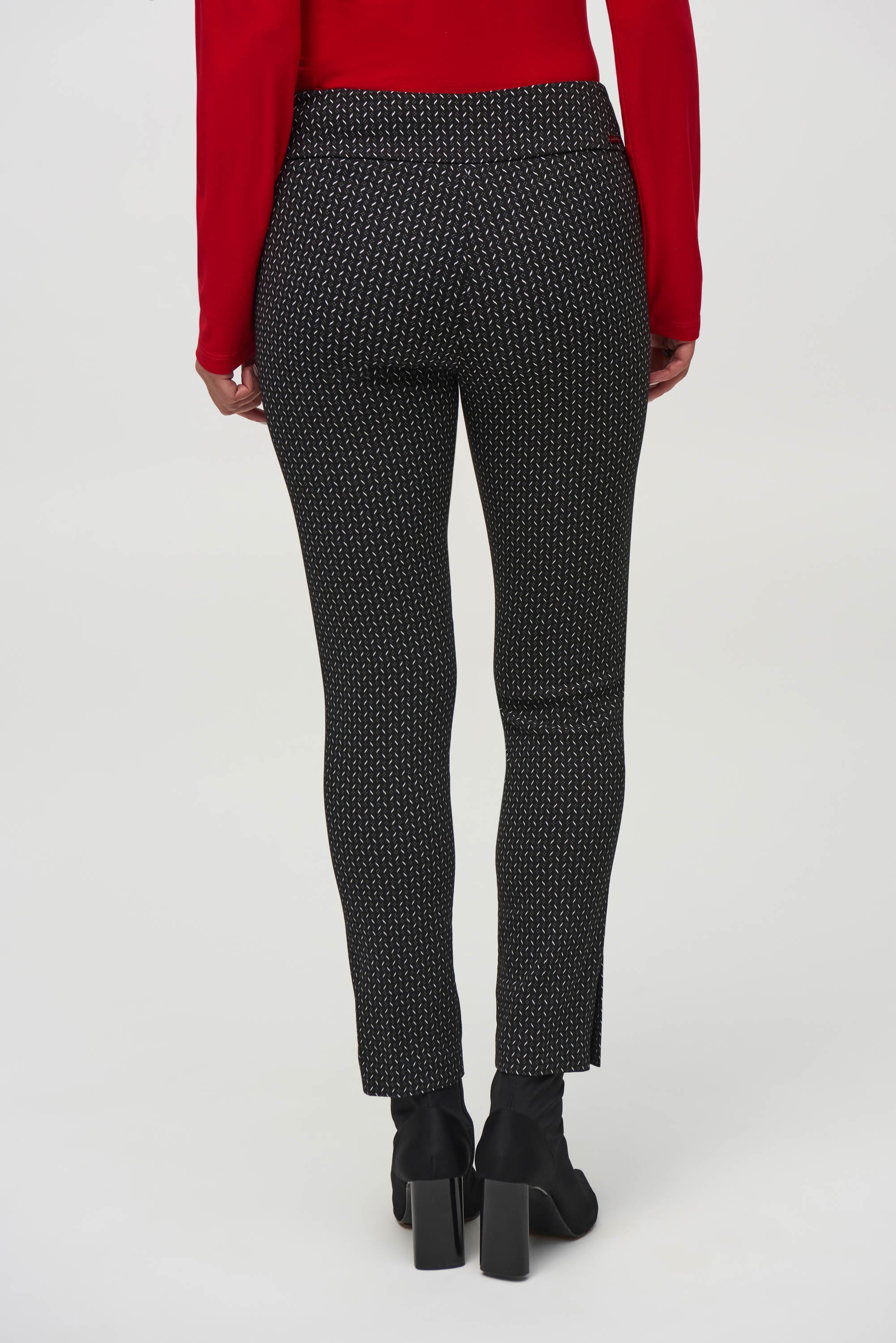 Découvrez l'élégance moderne avec ce pantalon noir facile à enfiler, offert par Joseph Ribkoff. Confectionné en jacquard tissé, ce pantalon se distingue par ses imprimés abstraits sophistiqués qui ajoutent une touche artistique à votre garde-robe.
