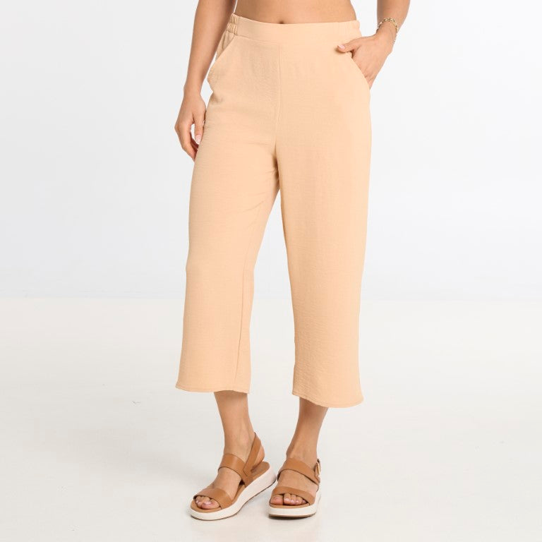 Les poches pratiques en biais à l’avant ajoutent une touche fonctionnelle, parfaitement intégrée au design. Confectionné dans un tissu léger et uni, ce pantalon est parfait pour la saison estivale, les journées chaudes ou les voyages.