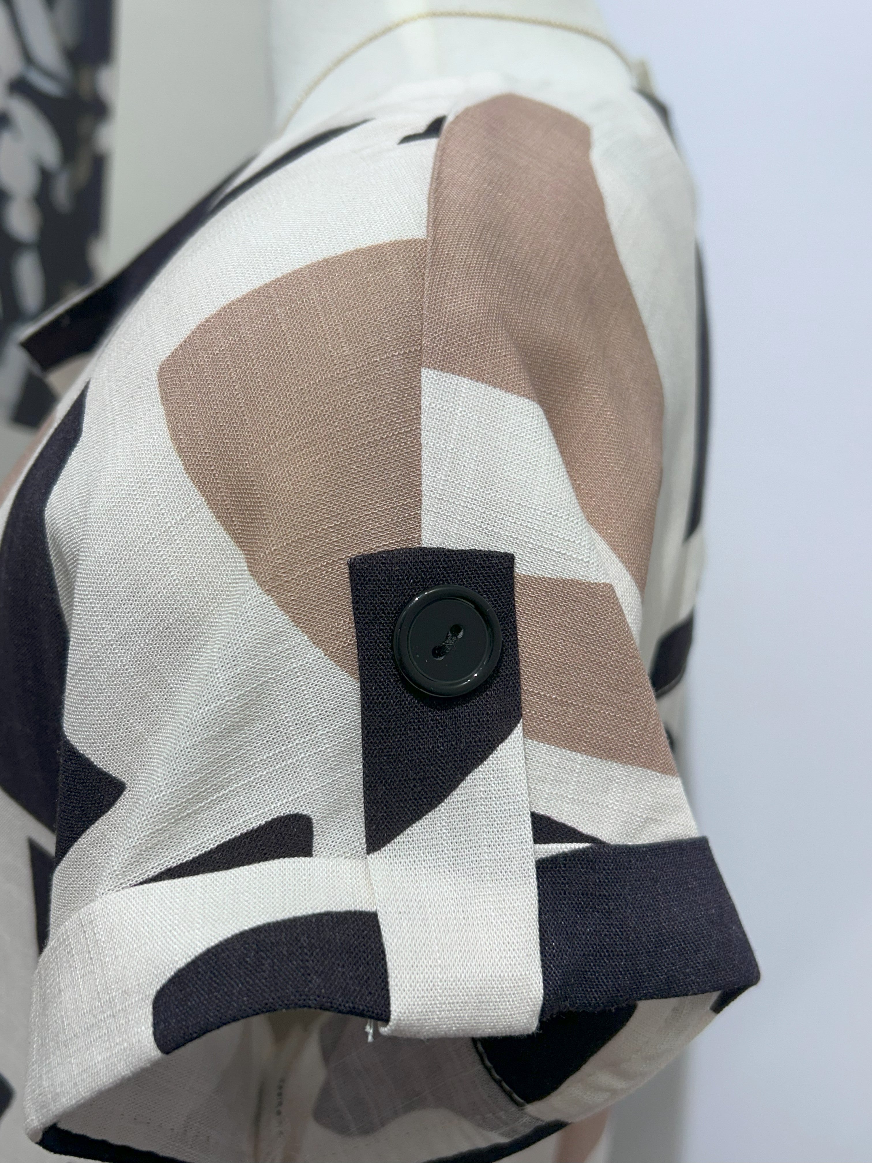 - Un imprimé artistique dans des nuances naturelles de beige et brun, créant un effet visuel dynamique et sophistiqué.