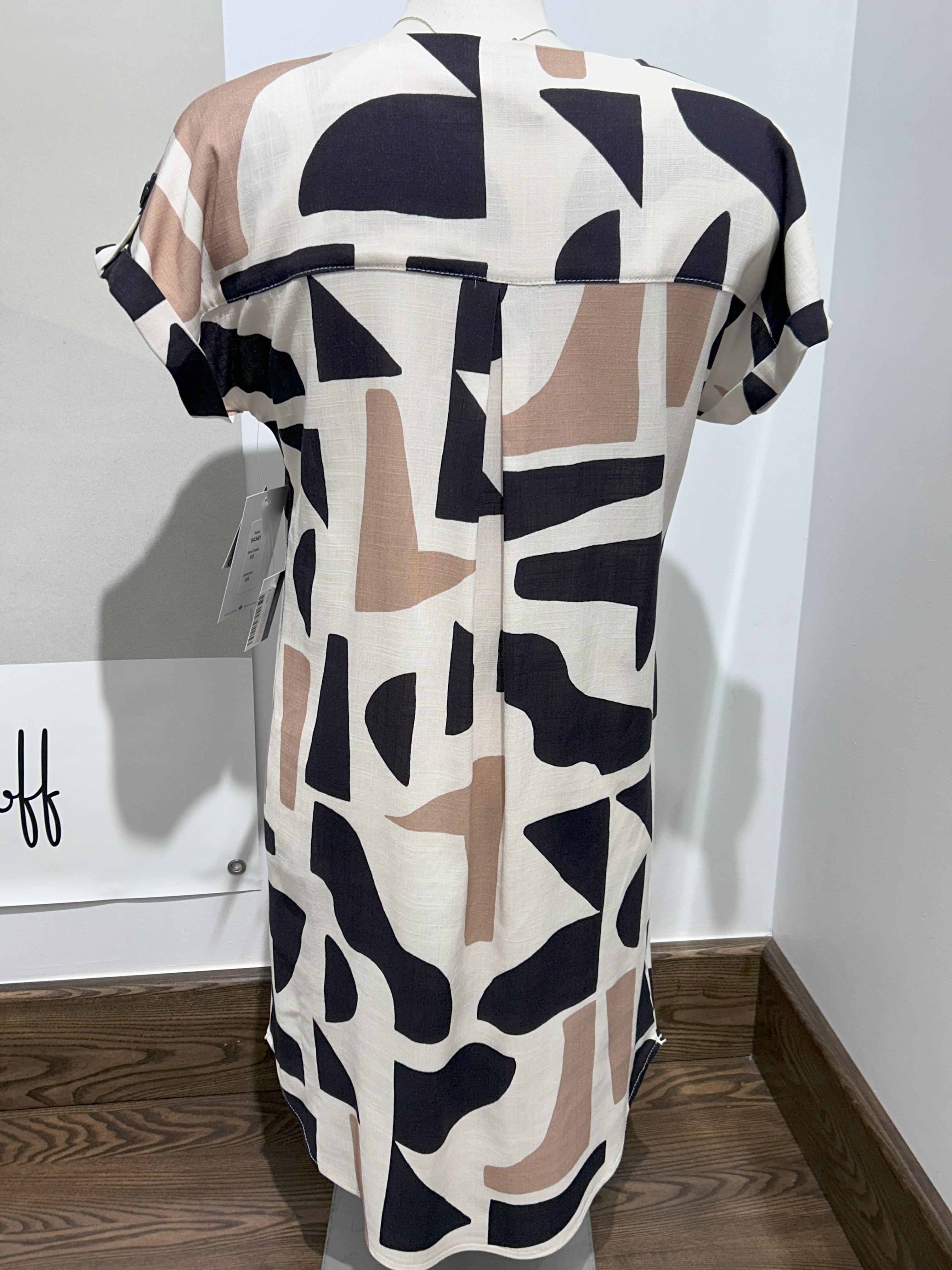 Cette robe à la coupe impeccable et aux motifs abstraits vous permet de vous sentir à l’aise et chic, que ce soit pour le travail ou une sortie élégante.