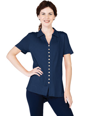 Tissu Doux et Léger : Composé de 92 % viscose et 8 % élasthanne, ce chemisier offre une texture agréable au toucher et un confort optimal tout au long de la journée.